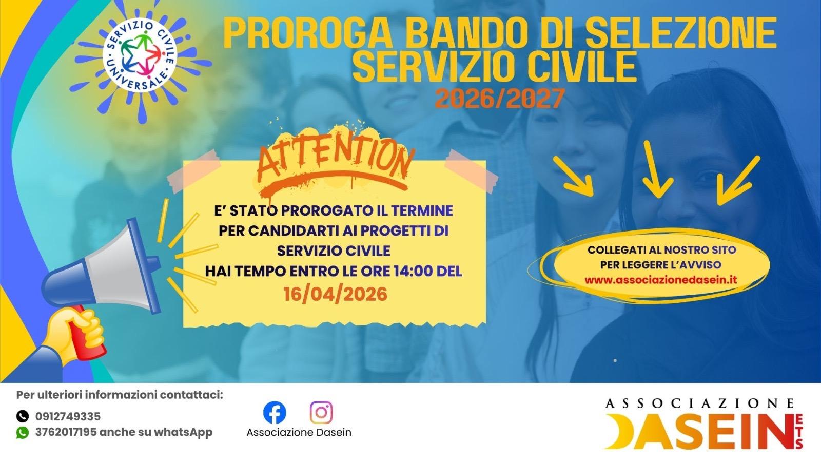 Servizio Civile – Proroga Bando di selezioni volontari - 2026-2027