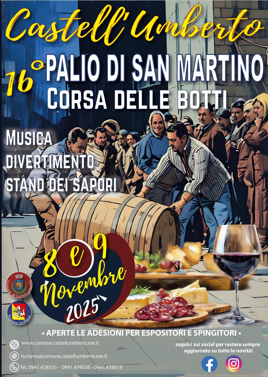 Il Palio di San Martino - Corsa delle Botti si svolge a Castell’Umberto il fine settimana più vicino all’ 11 novembre giorno dedicato al Santo di Toures, San Martino, che unisce la liturgia cristiana alla tradizione rurale.