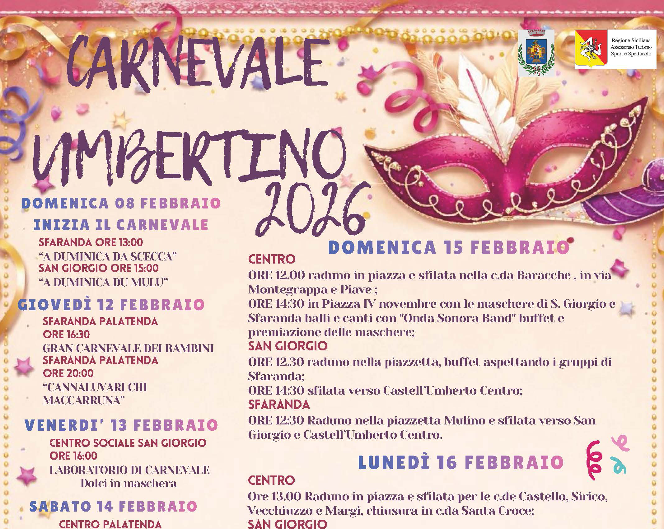 Un Carnevale ricco di appuntamenti, colori e tradizione, pensato per coinvolgere tutta la comunità.